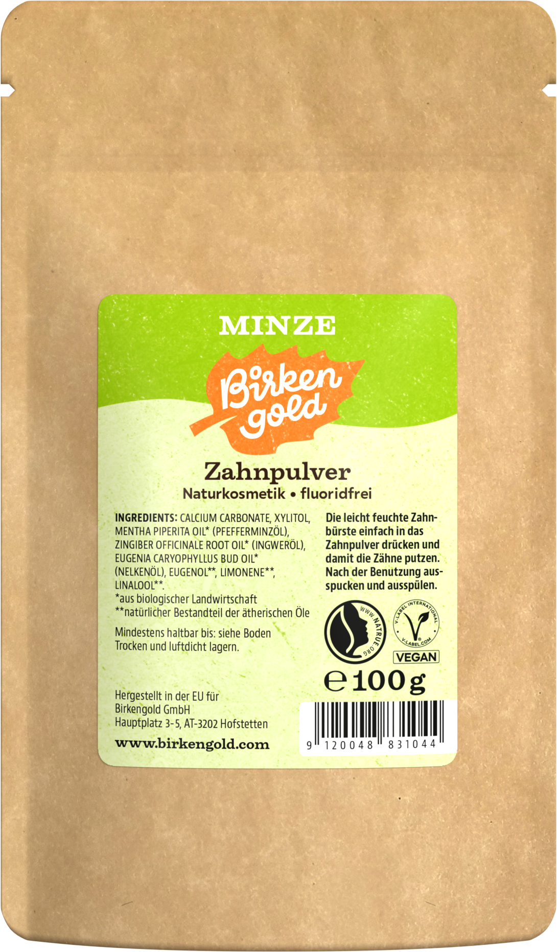 Birkengold® Паста за зъби на прах с ксилитол има положителен ефект върху здравето на зъбите. Комбинацията от калциев карбонат и етерични масла нежно почиства, предпазва зъбния емайл и подпомага образуването на алкална среда в устната кухина, която създава неблагоприятни условия за развитието на кариес и пародонтални бактерии.