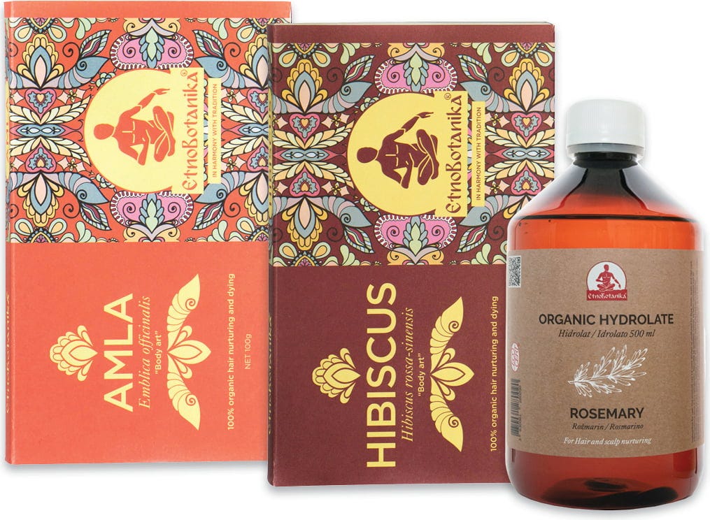 Този комплект съдържа аюрведична грижа от хибискус, амла и хидрозол от розмарин. В синергия те образуват цялостен комплект за домашна употреба, основан на древните знания на Аюрведа и съвременните нужди от грижа за скалпа.