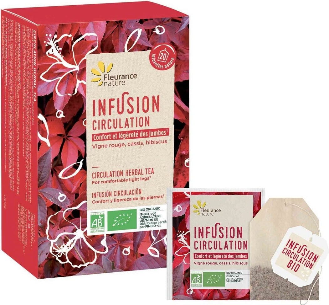 Чаената смес "Циркуляция" съдържа червено вино и е идеална за натежали крака. Съдържа също касис, цветя от хибискус и листа от боровинка и има вкус на червени плодове.