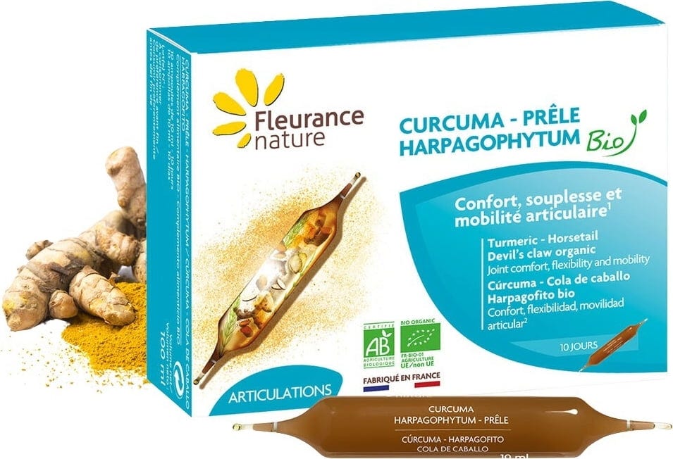 Fleurance Nature Био куркума, дяволски нокът и хвощ, 10 ампули
