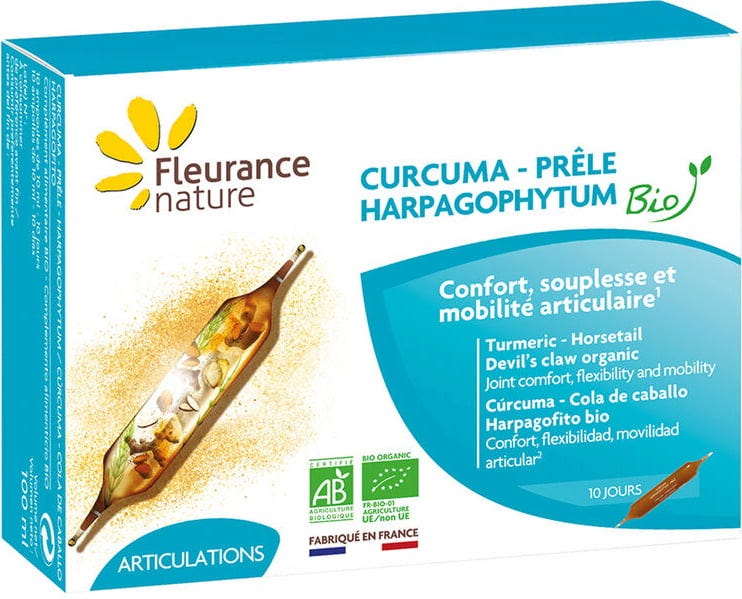 Fleurance Nature Био куркума, дяволски нокът и хвощ, 10 ампули