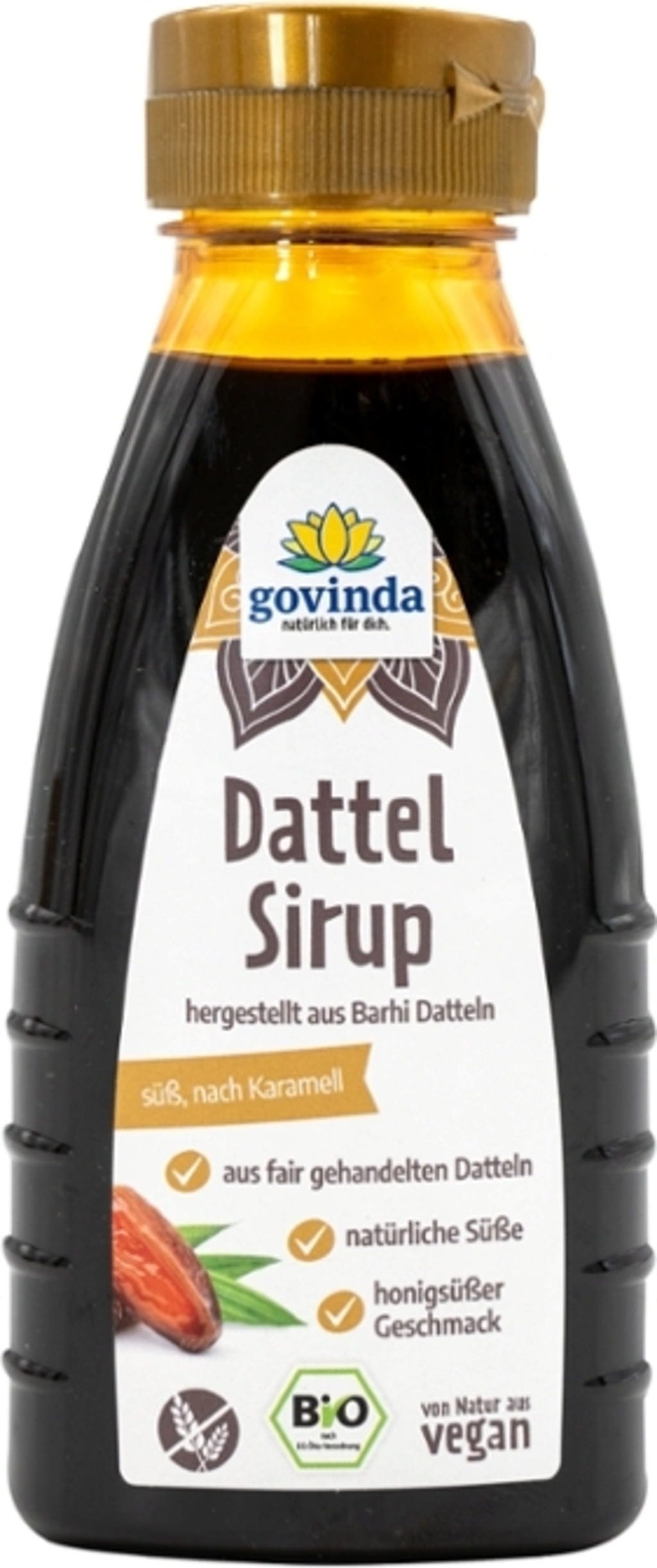 Био сиропът от фурми на Govinda се получава от ароматни Barhi фурми и впечатлява със златистата си текстура. Той е изцяло растителна алтернатива на меда или кленовия сироп и обогатява десерти и аюрведични ястия с фина карамелена нотка. Неподправен натурален продукт без добавки.