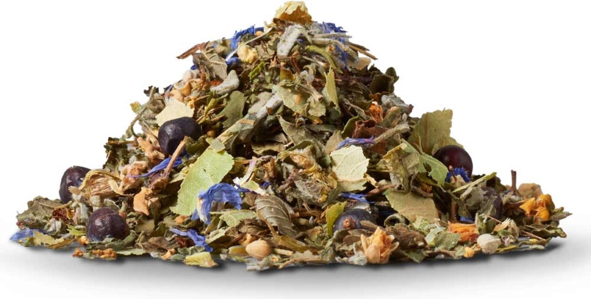 Weiße Melissenblätter, липов цвят, градински чай, плодове от хвойна, калуна, живовлек, цветчета бъз, Ментови листа, Thymian, цветчета от метличина[1]