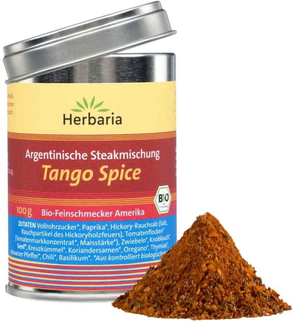 цяла тръстикова захар[1], Червен пипер[1], Пушена сол, доматени люспи[1] (Доматено пюре концентрат[1], царевично нишесте[1]), лук[1], Чесън[1], горчица[1], Кимион[1], семена от кориандър[1], Риган[1], Thymian[1], черен пипер[1], Чили[1], Босилек[1]