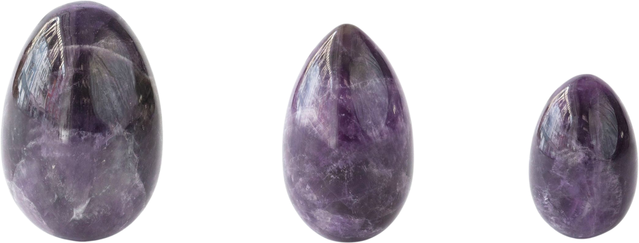 Комплектът с яйца за йони от аметист съдържа и трите размера. Аметистът е един от най-мощните скъпоценни камъни за тялото.