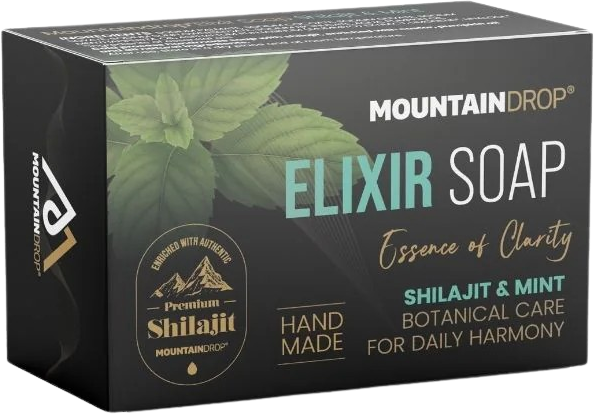 Elixir Soap от Mountaindrop е ексклузивен сапун за грижа, обогатен с богат на минерали премиум Shilajit. Произведен чрез щадящ студен процес на смесване, той запазва напълно ценните минерални съставки и другите чувствителни към топлина компоненти. Формулата е целенасочено съобразена с нуждите на различни типове кожа и осигурява нежно почистване, без да изсушава, дори при чувствителна кожа. Предлага се в освежаващите варианти Citronella или Mint и след всяко измиване оставя кожата поддържана и приятна на допир.