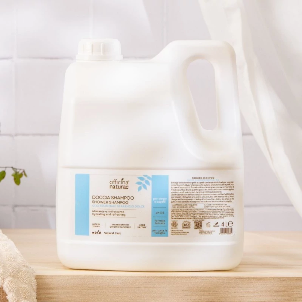 Този 2в1 продукт действа освежаващо и тонизиращо. Неговата деликатна пяна нежно почиства кожата и косата, същевременно глезейки с екстракт от био слез и витамин Е. Етерични масла от сладък портокал и лимонена трева осигуряват приятна свежест. Идеален за спортисти, но също подходящ за деца и за ежедневна употреба.