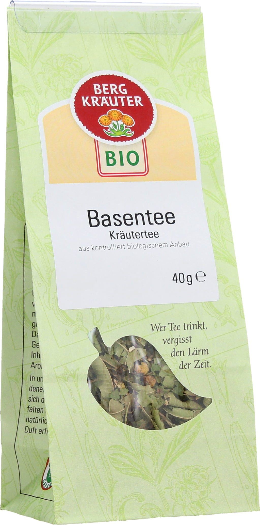 Био базовият чай на марката Bergkräuter е перфектна смес от листа и цветове, които заедно създават хармоничен билков чай. Чаят съдържа, наред с други, лимонова върбинка, бъзов цвят, коприва, лайка и бял равнец.