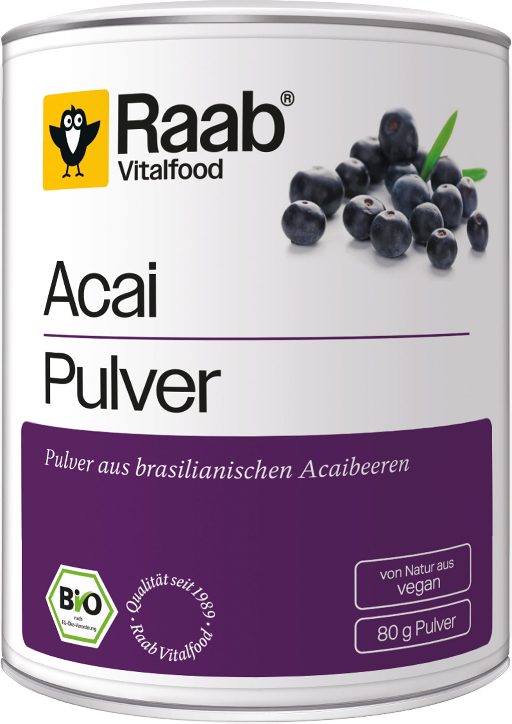 Прахът се получава от тъмно лилавите до черни плодове Акай от района на Амазонка. Те се събира ръчно и се обработват внимателно. Съдържат фитохимикали като полифеноли (3300 мг на 100 г) и антоцианини (380 мг на 100 г). Благодарение на плодово- тръпчивия си вкус, прахът е идеален за овкусяване на смутита, шейкове, десерти и сладкиши.