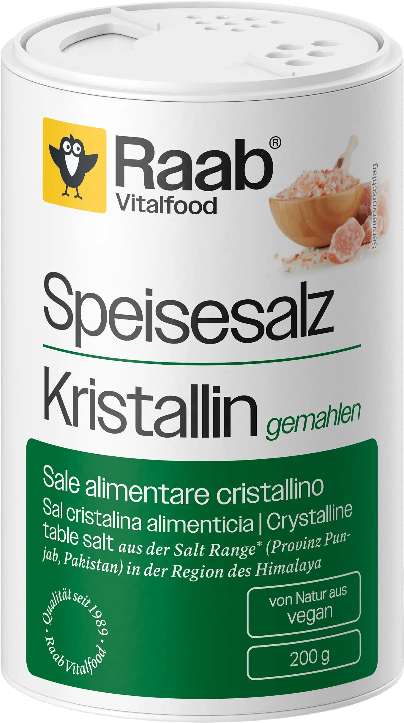 Raab Vitalfood използва само най-добрите суровини и проверява всички продукти за остатъци и заявеното хранително съдържание. Солта е естествено веган.