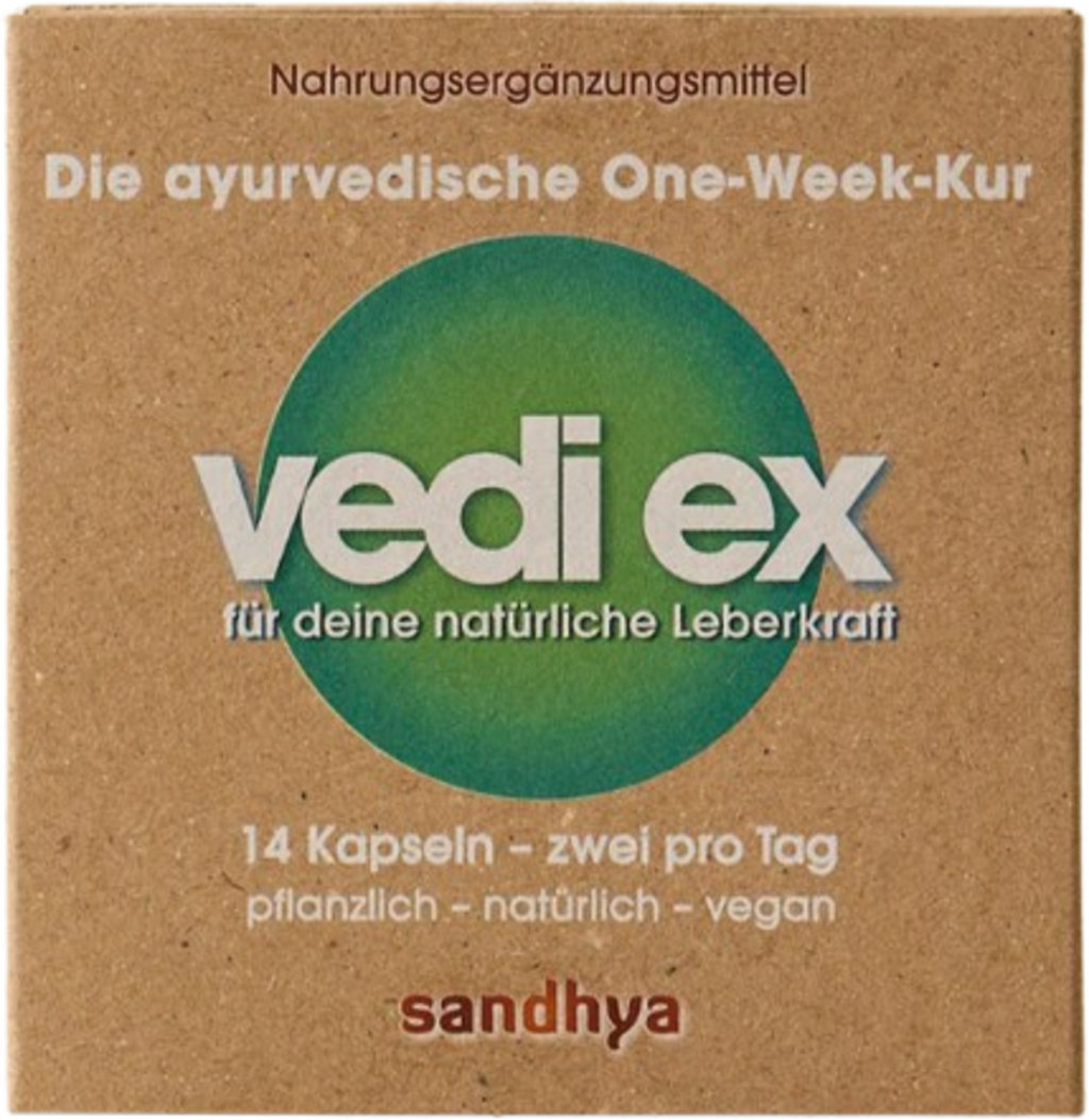 Аюрведичните vedi ex капсули на Sandhya са 100% веган и съдържат ценни горчиви вещества – сред тях каперсов храст, бял трън, глухарче и бял равнец. Висококачествените растителни съставки се капсулират и пакетират в Германия.