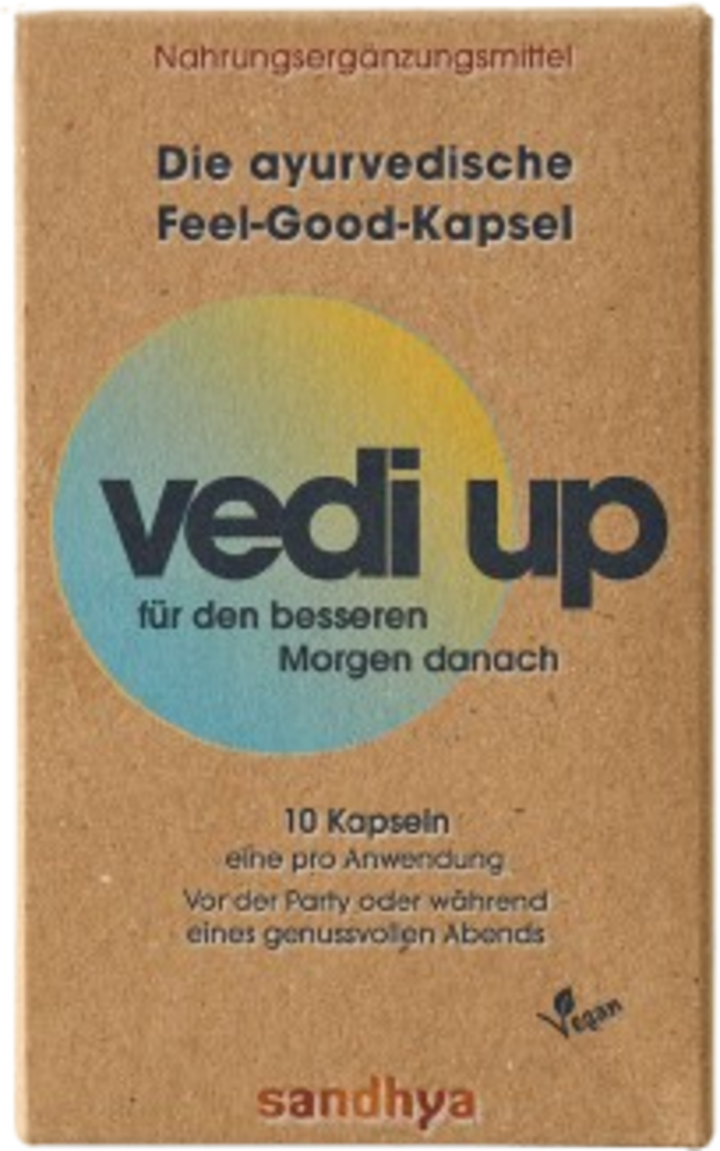 Капсулите vedi up Feel Good на Sandhya те подкрепят по естествен начин след обилно хранене, при физическо натоварване или в стресови периоди. Аюрведичната рецептура съдържа 7 растителни екстракта, сред които цикория, амла и ашваганда. Растителните съставки са богати на горчиви вещества, витамини и минерали.
