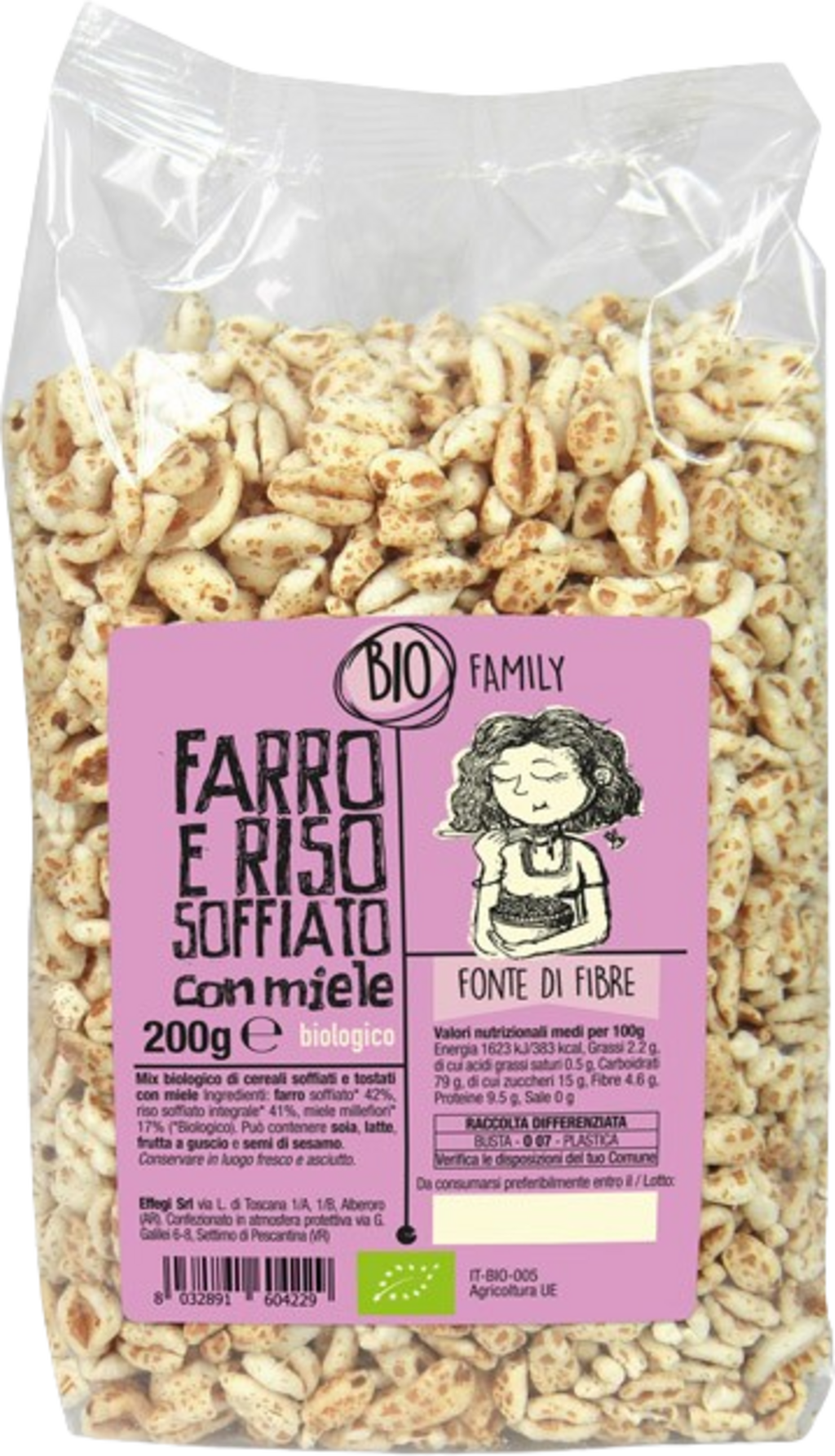 Бухналa спелта и пълнозърнест ориз плюс прекрасната подслаждаща сила на ценен мед от диви цветя - просто идеална комбинация! Спелтата и оризът са особено нежни за стомаха и осигуряват висококачествени фибри, докато медът също е известен със своите полезни свойства. Заедно с мляко, кисело мляко или плодови сокове, продуктът гарантира вкусна закуска за малки и големи.