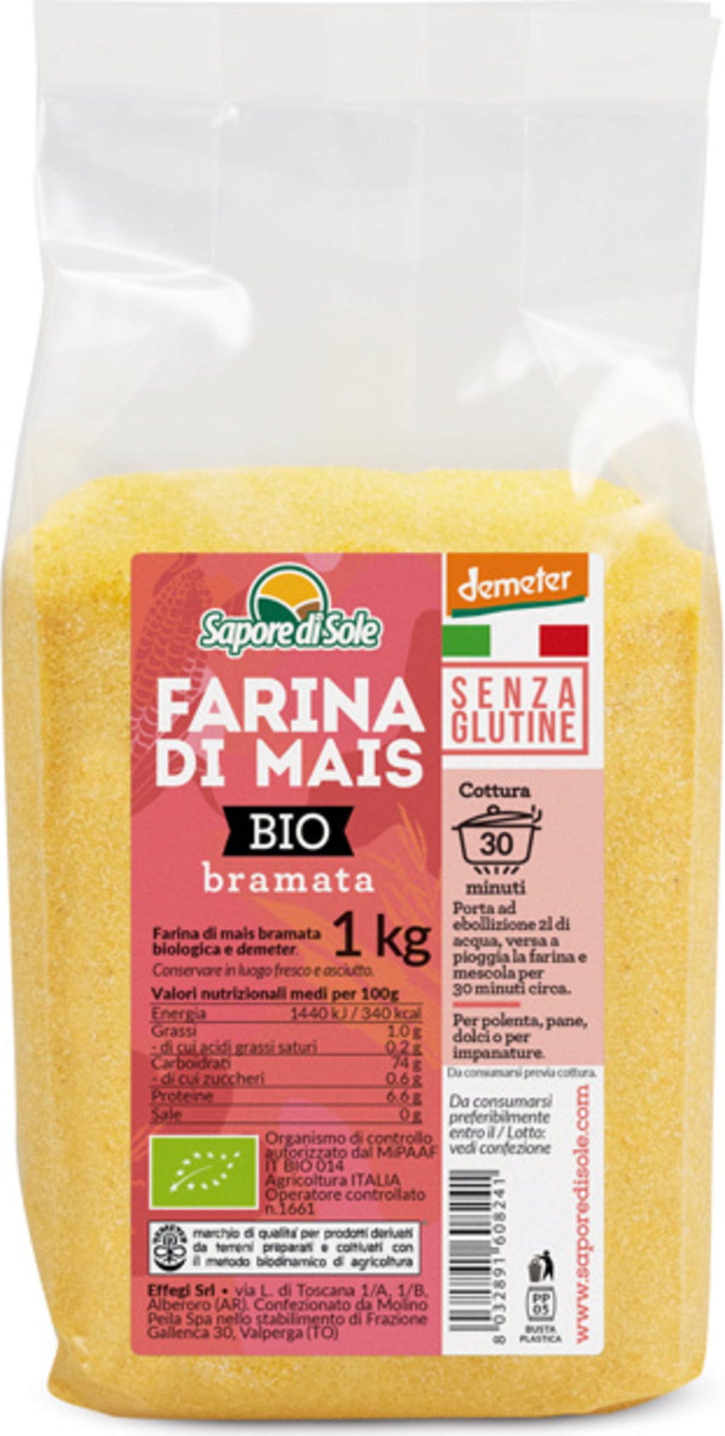 Sapore di Sole Био царевично брашно (едрозърнесто), 1 kg