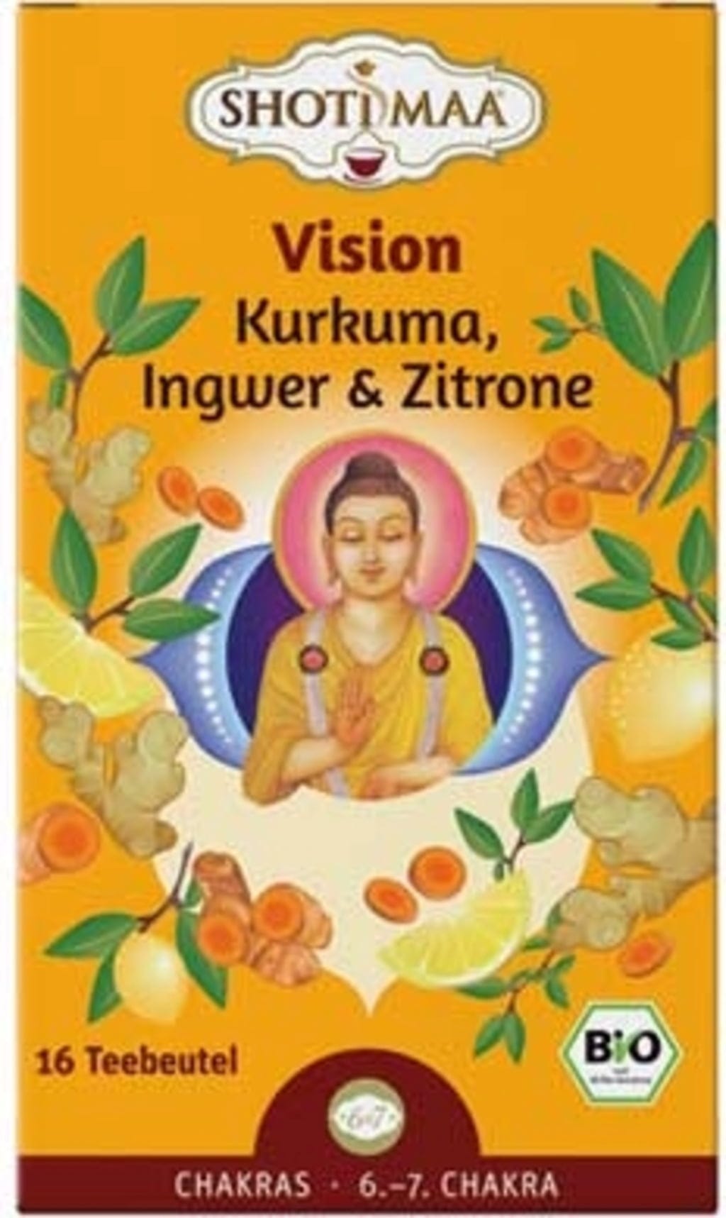 Оставете се да ви вдъхнови сияйният цвят на тази композиция на Shoti Maa, която с впечатляващ дял от 50% куркума и 19% джинджифил създава затопляща, златиста основа. Съчетанието от лимонов сок, лимонова кора и лимонова мирта придава на сместа изключителна свежест, а ментата и лимоновата върбинка добавят ясна нотка. Тази рецептура е посветена на философията на шестата и седмата чакра и ви кани да изострите възприятията си и осъзнато да преживявате моменти на единство. Всяка глътка ви помага да насочите вниманието си към интуицията.