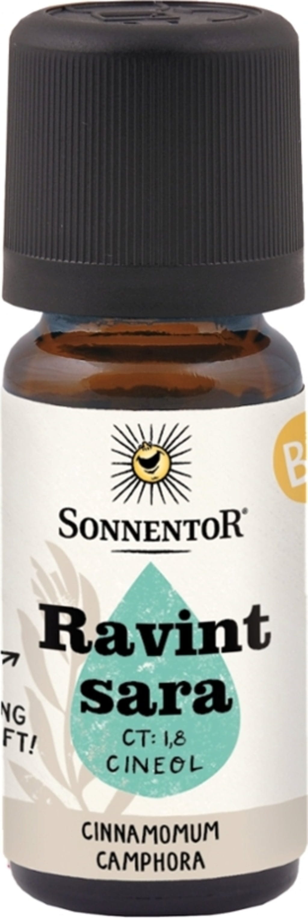 Ravintsara съчетава дестилата от клонките и листата на камфоровото дърво. Маслото се отличава с интензивен, свеж аромат, който силно напомня на евкалипт. Това етерично масло изпълва дома ви със свеж полъх. Опитайте Ravintsara от Sonnentor и като съставка в масажни масла или спрейове за помещение.