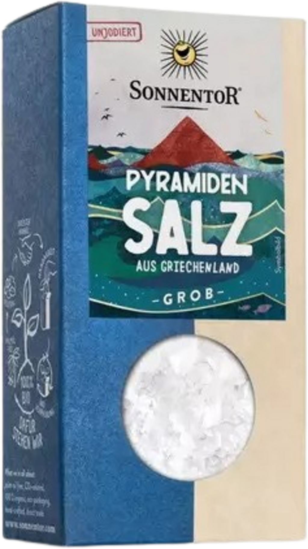 Не се притеснявайте: солта не идва от плесенясали пирамиди, а е чиста, нейодирана морска сол от Гърция! Дължи името си на люспите с форма на пирамида. Страхотна консистенция, за да добавите финален щрих към вашите ястия! Тъй като се топи много бързо в устата, тя е идеална за салати, купи, хляб и карамелени десерти. При дозиране можете да следвате съвета "по-малкото е повече", тъй като солта се отличава със силен вкус.