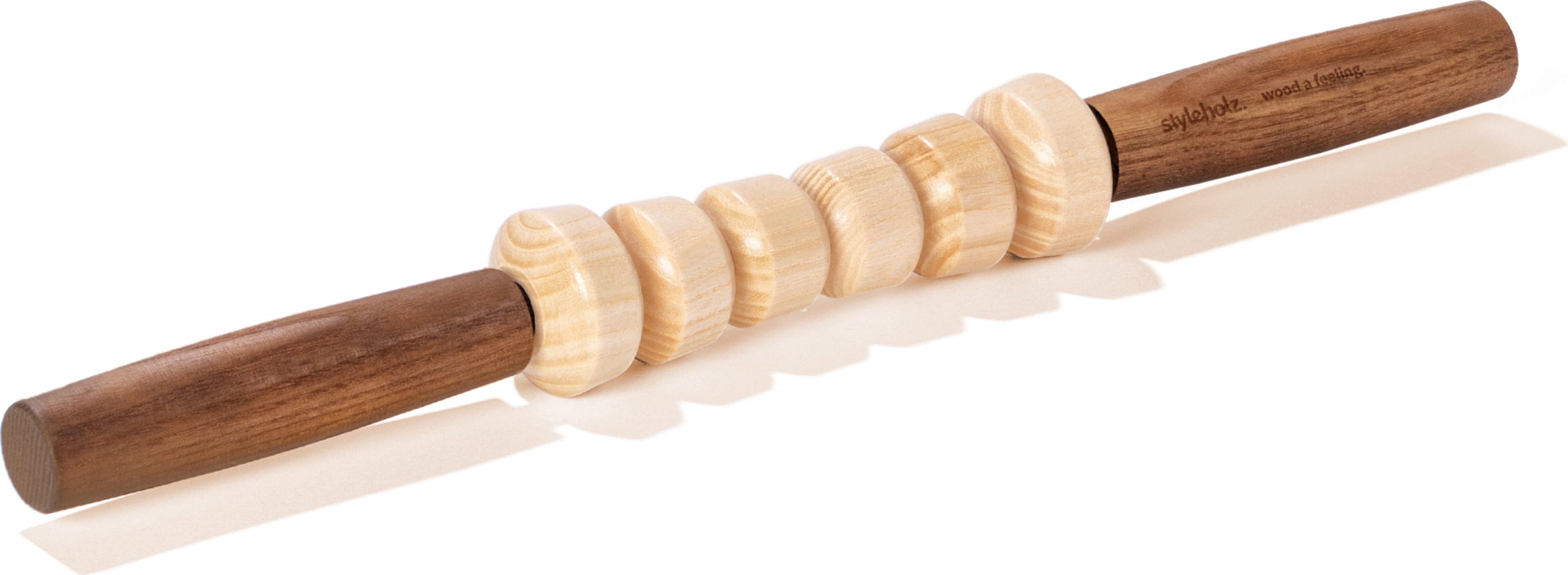Компактен и гъвкав масажен стик от ясен за лесна самостоятелна употреба