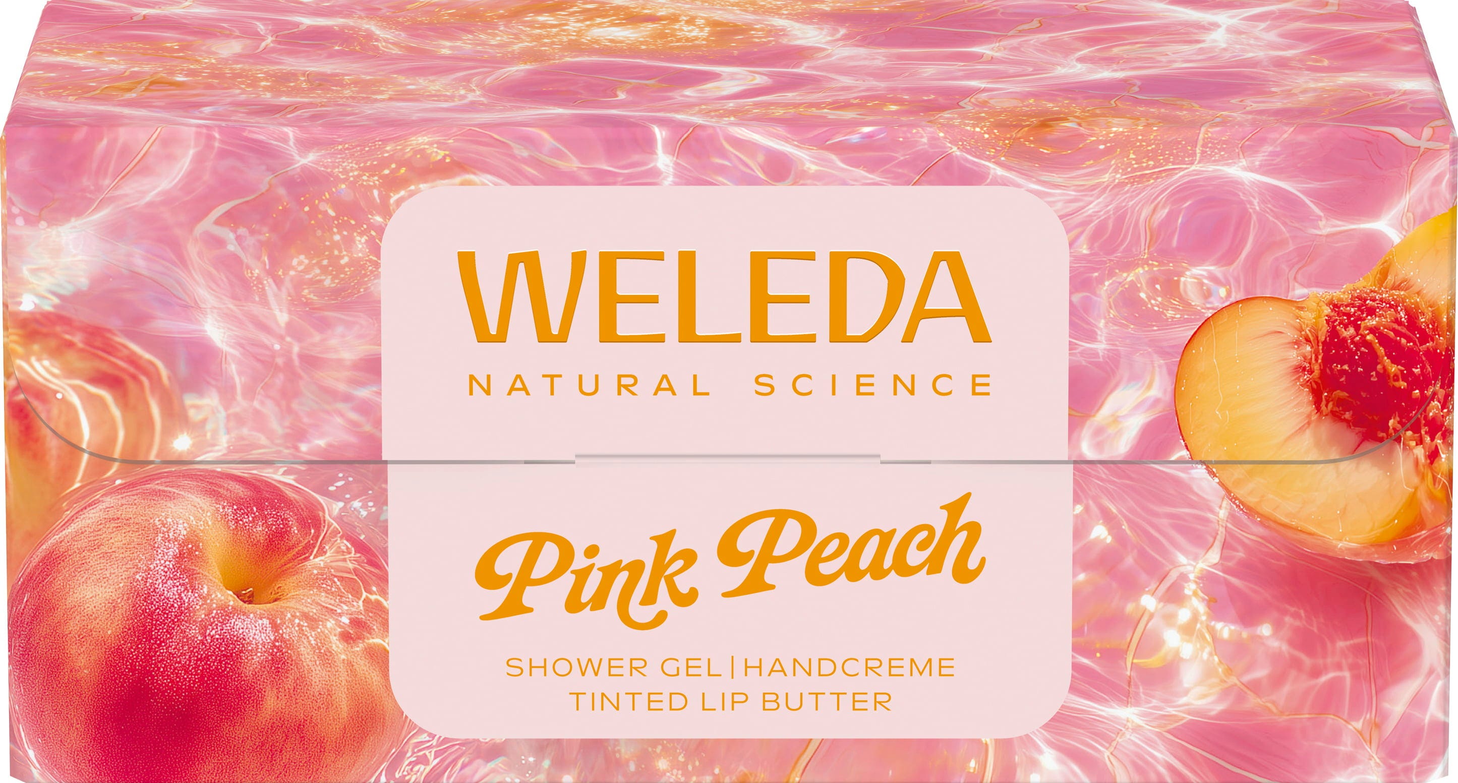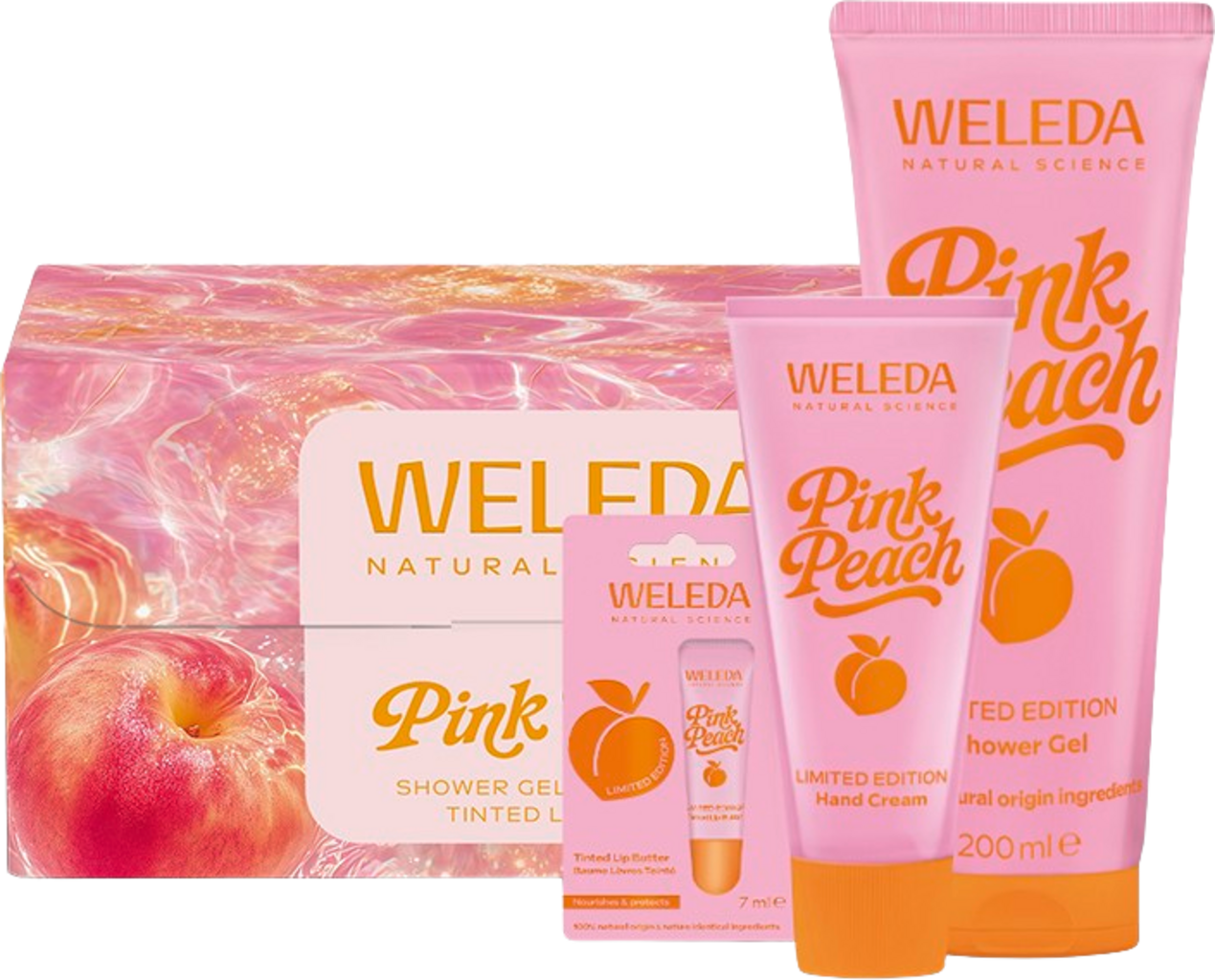 Подаръчният комплект "Розова праскова" е олицетворение на лятото, розовото и целунатото от слънцето пътуване с аромати. Изпълнени с плодово-свежо очарование, трите продукта подхранват кожата и играят със сетивата.