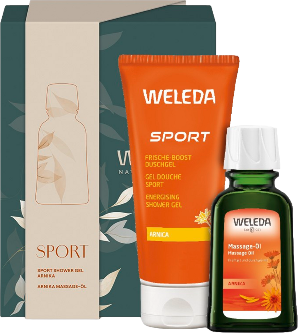 Този подаръчен комплект съдържа популярна комбинация от продукти на Weleda и възнаграждава всички активни хора и любители на спорта с регенерираща грижа за кожата. Стимулиращият душ-гел се грижи интензивно за тялото ви след усилена тренировка, а масажното масло ви отпуска преди и след тренировка. Опакован в красива картонена кутия, комплектът е и идеална идея за подарък за вашите съотборници.